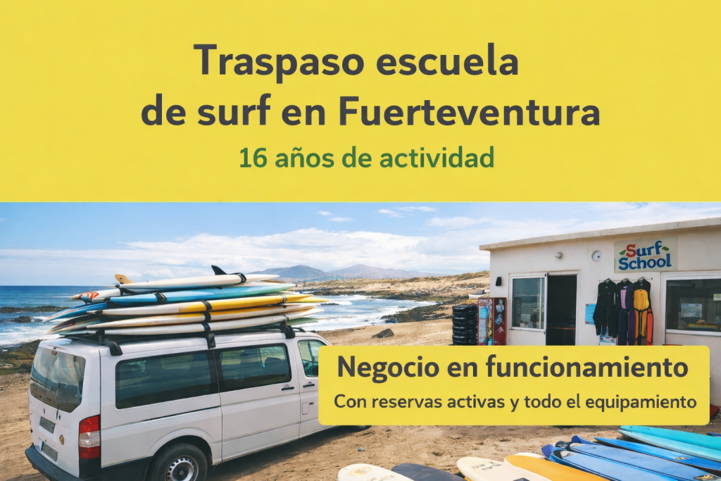 Se traspasa escuela de surf en pleno funcionamiento en Fuerteventura, con 16 años de actividad y lista para continuar trabajando desde el primer día, con reservas ya activas.